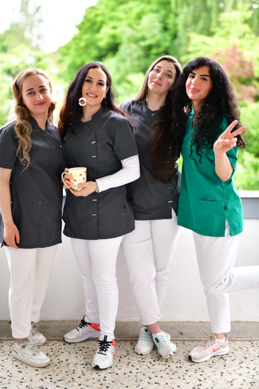 In unserer Praxis erleben Sie eine herzliche und familiäre Atmosphäre, in der der vertrauensvolle persönliche Umgang „Auf Augenhöhe“ eine große Rolle spielt. Zu seiner Zeit durfte jede von uns eigene wertvolle Erfahrungen im Bereich des Gesundheitswesens sammeln und untereinander austauschen. Daraus haben sich im Laufe der Zeit Herangehensweise und Methoden entwickeln, mit denen wir auf unsere Patienten eingehen. Egal ob jung oder alt, gesund oder beeinträchtigt, zuvorkommend und offen oder zurückhaltend und ängstlich, durch eine humorvolle und lockere Art wollen wir Ihnen die Angst vor Behandlungen nehmen. Zahnmedizin des 21. Jahrhunderts kann bei uns Spaß machen. 😊